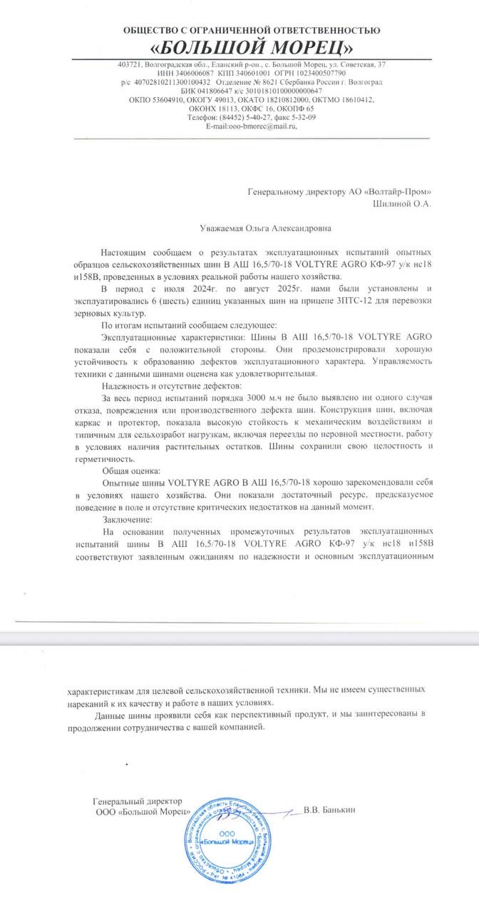 Мы благодарим наших партнёров за доверие и сотрудничество и продолжаем совершенствовать продукцию, чтобы каждый фермер мог быть уверен — шины VOLTYRE AGRO и TITAN работают на результат!