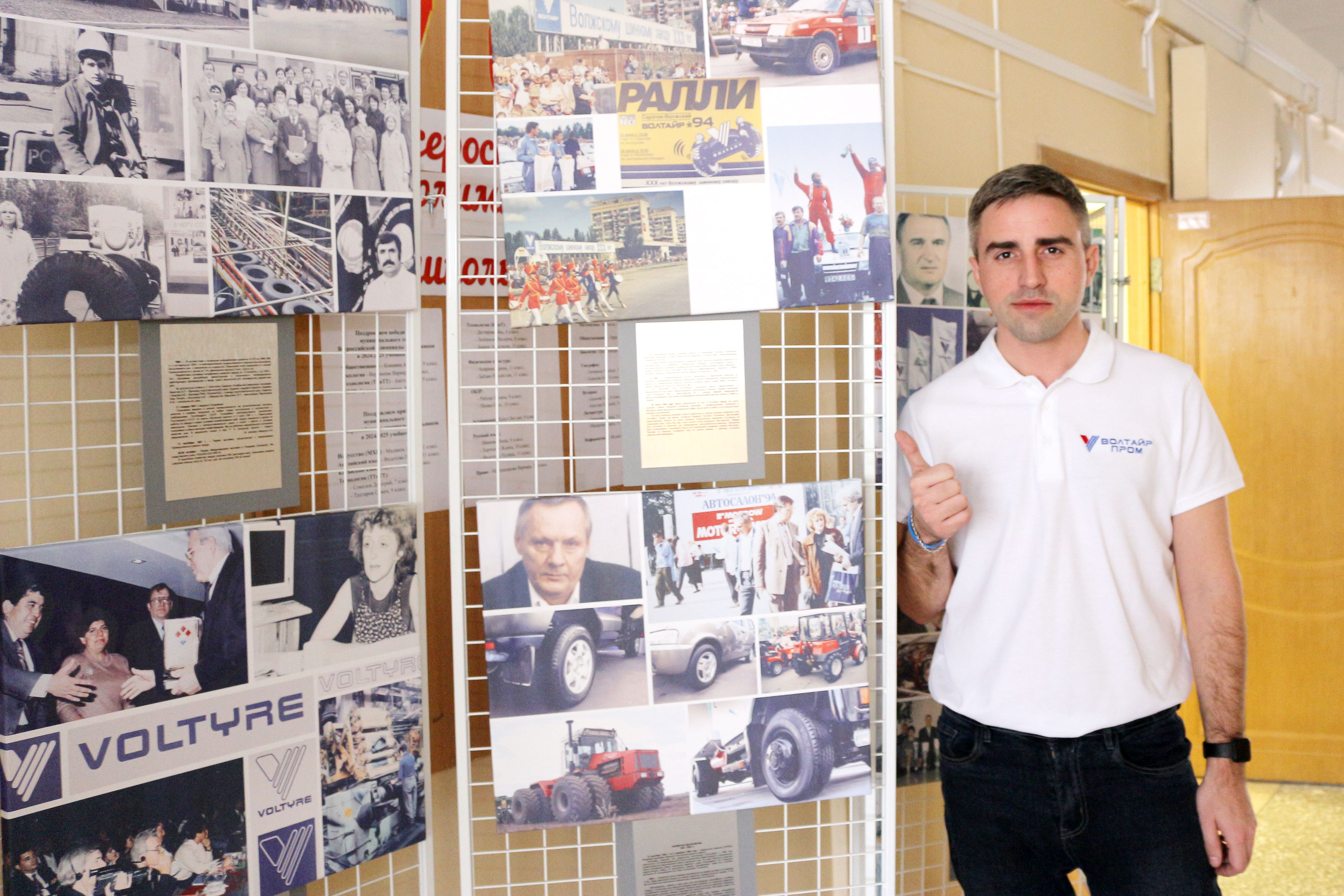 У нас есть новый "мобильный музей", на котором собрана информация об истории нашего шинного завода. Несколько стендов снабжены иллюстрациями и описанием важных эпох для нашего предприятия.Мы уже использовали его в январе, когда эксперты из АО "Волтайр-Пром" участвовали в "Профессиональном десанте", организованном МОУ СШ №17 им. К.Нечаевой. Ученики и преподаватели школы с интересом рассматривали информацию на стендах и попросили оставить музей на некоторое время, чтобы ознакомиться подробнее.